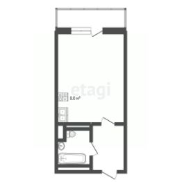 Квартира имеет коридор, совмещенный санузел, комнату, балкон.
