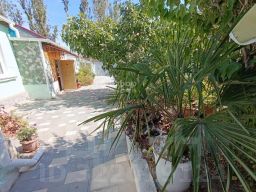 Продам жилой дом в центральной часть города Феодосия! На земельном участке 7.2 сотки (ИЖС). На территории располагается два дома: один 74 кв. метра; второй 52 кв. метра. Коммуникации: отопление газовое, центральная канализация, электричество, газ, вода. Общая площадь: 126 кв. метров. Планировка первого дома: 4 комнаты, кухня, санузел, коридор. Планировка второго дома: 2 комнаты, кухня, санузел, прихожая, есть веранда с выходом во двор. На территории: две беседки для отдыха, есть летние комнаты для отдыха, летняя кухня, летний душ, туалет, а также несколько хозяйственных построек. Двор озеленен, растут плодовые деревья: груша, яблоня, абрикос, инжир, гранат, хурма, слива, черешня, зизифус, кусты чёрной смородины, малины, много роз, цветов, а также пальмы. До моря 7 минут прогулочным шагом. Документы РФ.
