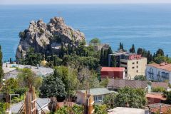 Панорамные виды на море, гору Аю-Даг (Медведь-гора) и скалы Адалары;