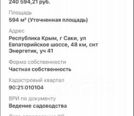 Продам участок СНТ энергетик 6 соток участок ровный прямоугольной формы 1-я линия участок расположен возле автодороги Симферополь Евпатория 4 км до моря 3 км до города Саки рядом розовое озеро аквапарк отлично подойдёт для строительства дома или для бизнеса