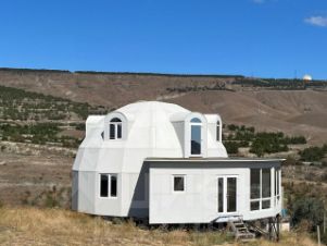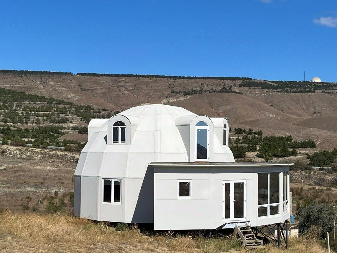 Дом имеет два этажа, что создаёт ощущение простора и комфорта. Необычная форма здания привлекает внимание и создаёт атмосферу оригинальности. Важно отметить, что расстояние до города составляет всего 6,00 км, что обеспечивает удобство доступа ко всей необходимой инфраструктуре: магазинам, кафе и культурным достопримечательностям.