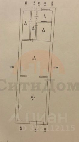 Дом состоит из коридора 2.8 кв. м, гаража 28.5 и 22.3 кв. м, комнаты 5.4 кв. м, кухни 3.2 кв. м, и бани 4.5 кв.м. Есть сарай в котором можно держать живность.