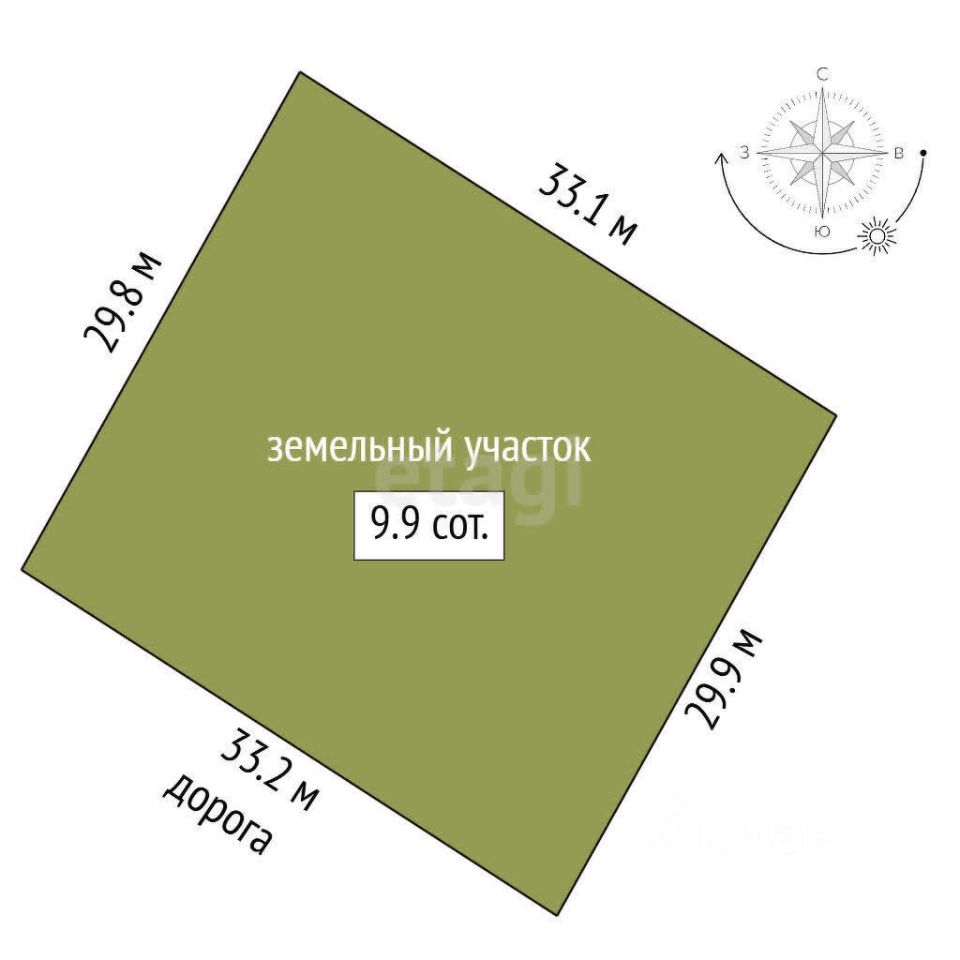 Сам участок имеет правильную прямоугольную форму, абсолютно ровный рельеф позволяет воплотить любые архитектурные идеи без дополнительных затрат и усилий.
