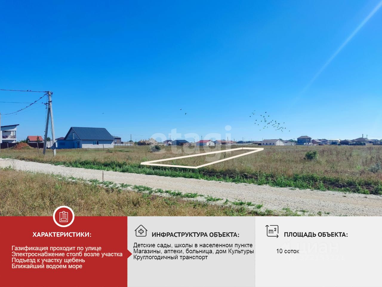 До моря и песчаного пляжа 500м. Участок правильной прямоугольной формы, не огорожен по периметру. Подведены к участку электричество и газ.