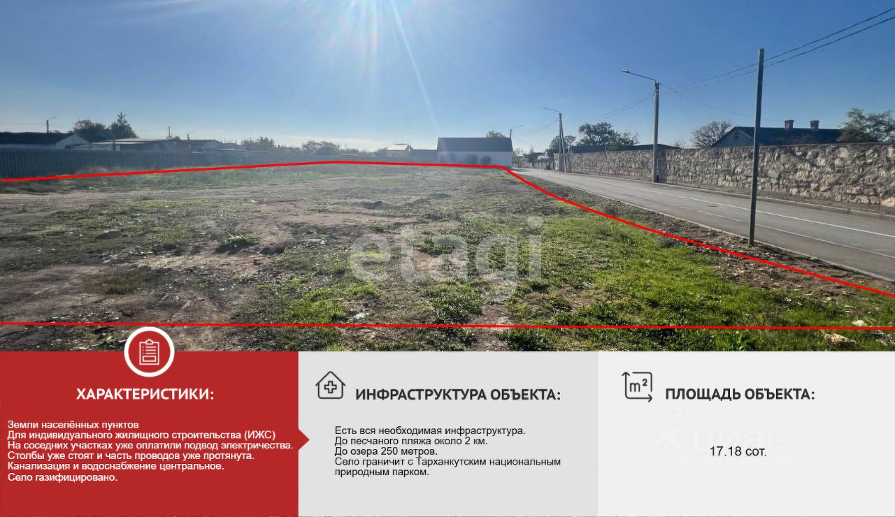 Продается земельный участок 17.18 соток, на западе Крыма в селе Оленевка.