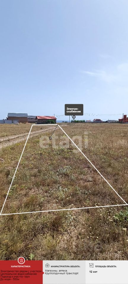 Отличная цена для ИЖС!!! Продается земельный участок 12 соток в 500 метров от моря, с прекрасными пляжами.