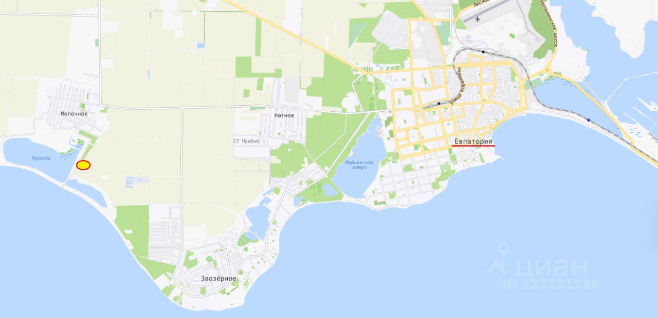 Участки расположены вблизи села Молочное, 9,4км от Евпатории. В селе есть школа, детский сад, больница, аптека, магазины. Стабильная транспортная развязка, без затруднений можно добраться до Евпатории или г.Саки на общественном транспорте.