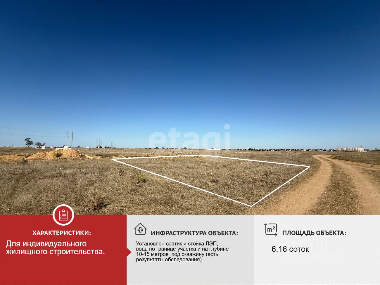 Установлен септик и стойка ЛЭП, вода по границе участка и на глубине 10-15 метров под скважину (есть результаты обследования).