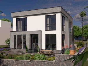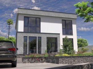 1 этаж: гараж 23,7 м2, тамбур 5,87 м2, холл 15,7 м2, кухня-столовая 19.7 м2, гостинная 24,8 м2, санузел 3,49 м2, кладовая 2,5 м2, котельная 4,47 м2, лестница 4,81 м2.