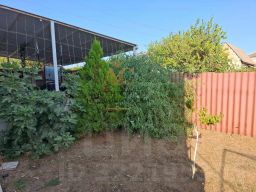 В саду растут фруктовые деревья- хурма, персики, груши и сливы двух сортов,