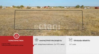 Площадь участка 13,7 сот. Категория земель - Земли населенных пунктов. Назначение - для индивидуального жилищного строительства. По границе участок не огорожен. Электроснабжение вдоль улицы. Участок находится недалеко от дороги.