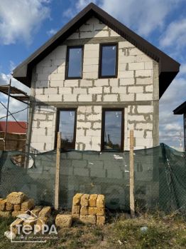 Коттедж типовой, представляет дом 66,1м.кв. с мансардным этажом + терраса. Каркас монолитный железобетонный с наполнением - газоблок (газобетон), на ленточном фундаменте.