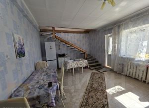 На первом этаже просторная кухня, совмещенный санузел, большая комната.