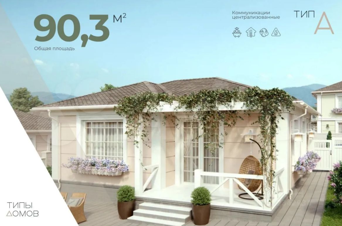 Плoщадь: 90,33 м2, тepраca 17,44 м2, учаcток 3,9 сот