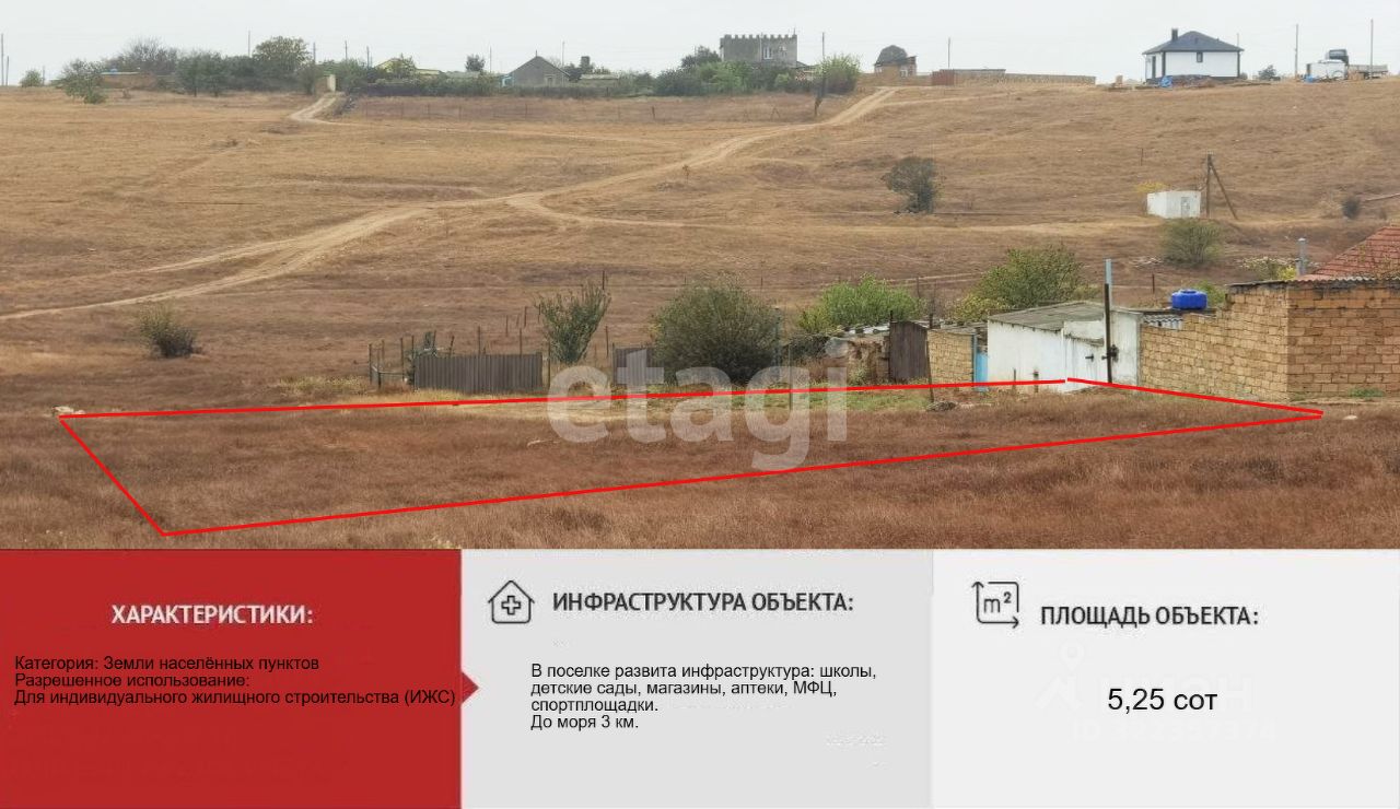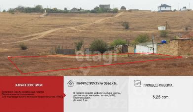 Продается земельный участок в поселке городского типа Черноморское. Общая площадь земельного участка 5,25 соток. Назначение земельного участка -для индивидуального жилищного строительства.