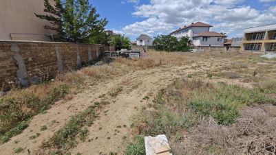 Ровный, прямоугольный, без построек. С трёх сторон огражден забором, въездные ворота 4,2 метра шириной.