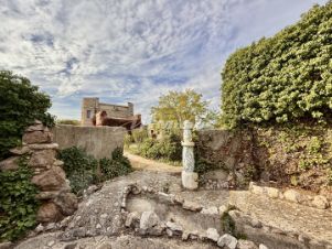огорожена, свои подъездные пути, крытый навес на территории для парковки АМ. Территория вся облагорожена тропинками для прогулок по саду где растут: тисы, крымские сосны, можжевельники, и так далее, два фонтана.