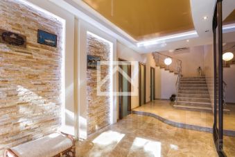 В доме выполнен дизайнерский ремонт с продуманной концепцией интерьера, использовано многоуровневое групповое освещение, создающее атмосферу уюта в любое время суток. Пространство наполнено светом благодаря панорамному остеклению, открывающему живописные виды.