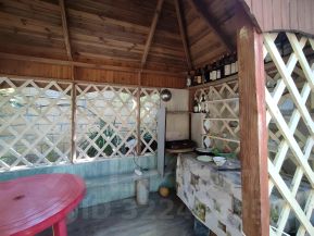 Продаются: двухэтажный деревянный дом площадью 107,3 кв.м. и гостевой дом 20 кв.м. в пгт. Черноморское на берегу моря. Дома находятся на участке 9 соток. Назначение земли: размещение дачных домов и садовых домов. В деревянном доме на 1 этаже расположены: коридор, просторная гостиная, кухня, жилая комната, подсобное помещение, совмещенный санузел. На втором этаже две спальни и совмещенный санузел, два широких балкона, которые имеют красивый вид на противоположные стороны. С балкона открывается красивый вид на море. В современном гостевом домике есть все для комфортного проживания: санузел, кухня, спальные места. В доме дизайнерский ремонт, установлены солнцезащитные трехкамерные стеклопакеты. В обоих домах вся необходимая для отдыха мебель, бытовая техника. На участке есть уютная беседка, в которой обустроено место для приготовления пищи. Есть летний душ. Так же на территории начато строительство гаража площадью 45 кв.м. и второго гостевого домика. Стройматериалы остаются. Коммуникации: свет, вода (скважина), зона Wi-Fi. Территория возле домиков облагорожена, очень уютно, красиво и функционально. На участке растут розы, персики, гранаты, королевский инжир, абрикосы и черешни. У участка удобное расположение: он имеет сквозные выходы на параллельные улицы. До моря 300 метров. До оборудованного места купания 500 метров. До пляжа Ребзик 1 км.