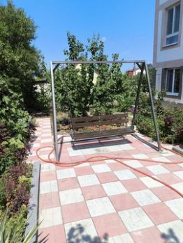 Азовское море очень тёплое. Прогревается рано. Купаться можно с 5-10 июня. По дороге на пляж находятся магазины, детская площадка.