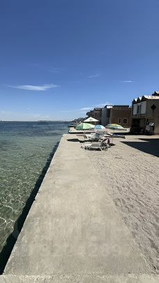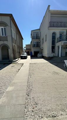 В 20 м берег залив Донузлав, с другой стороны 200 м побережье черного Моря. Где расположен благоустроенный пляж, рядом магазин, рыночек, кафе, спортивные площадки.