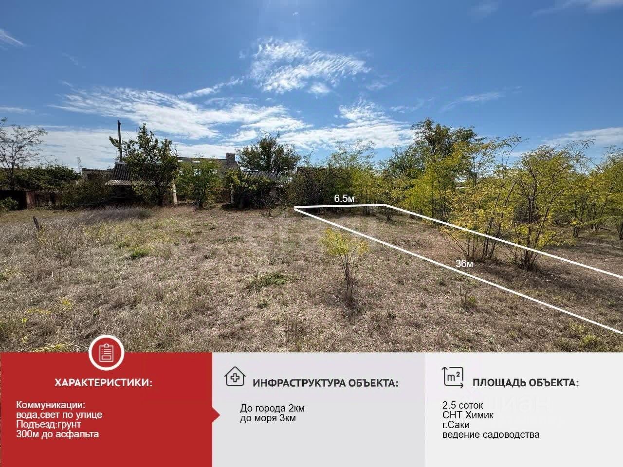 Продается земельный участок 2,5 сотки , город Саки , улица Заводская , СНТ Химик-1.
