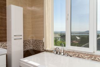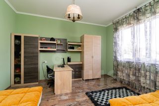 3 спальни детских, 1 спальня взрослая с выходом на балкон, кабинет, санузел с душевой кабиной и ванной с видом на озеро.