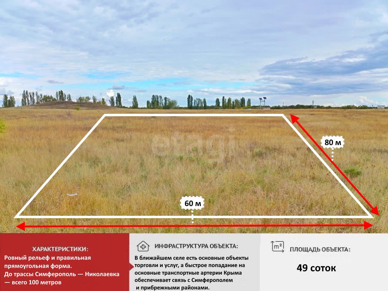 Территория находится в зоне с развивающейся инфраструктурой: в ближайшем селе есть основные объекты торговли и услуг, а быстрое попадание на основные транспортные артерии Крыма обеспечивает связь с Симферополем и прибрежными районами. Учитывая растущий спрос на землю в этом направлении, участок представляет собой перспективное вложение с возможностью как немедленного использования, так и долгосрочного роста сто.