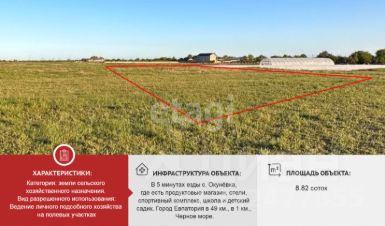 Продается участок площадью 8,82 соток, в 500 метрах от села Окунёвка.
