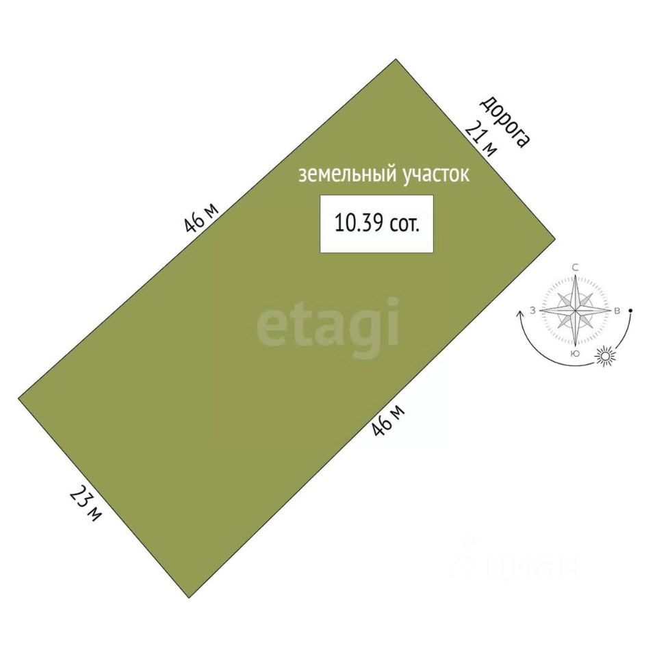 Площадь дома 53,7 кв. м., земельного участка 10,39 соток.
