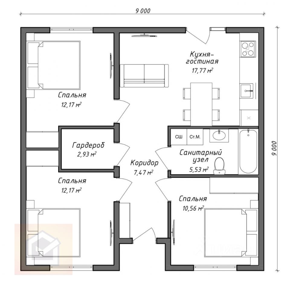 Просторанство для жизни: 100 м² с террасой. Три уютные спальни, светлые комнаты и продуманная планировка для комфорта каждого.