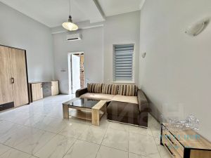 С обратной стороны здания отдельный автономный вход в квартиру: гостиная с кухней совмещены, две спальни с двуспальными кроватями, санузел с душевой совмещены.