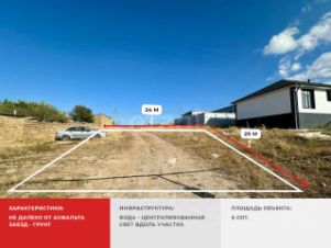 Участок под ИЖС площадью 6.16 соток (2426 м) отличается правильной формой и ровным рельефом, что упрощает планировку и строительство. Расположен в экологически благоприятном районе с плодородной почвой, без риска подтоплений и высоких грунтовых вод. Все коммуникации подведены: газ проходит по территории, есть электричество и центральное водоснабжение от Аянского (горного) водохранилища, обеспечивающее стабильное качество воды. Межевание выполнено кадастровым инженером, документы готовы к сделке, обременений нет.
