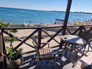 Продаётся участок у моря с гостевым домом и прямым выходом на пляж в г Евпатория ул Симферопольская, на 7 номеров, 1я линия от моря, на 2.5 сотках ИЖС + 2.5 сотки .,номера оборудованы санузлом кондиционером, телевизором, интернет, кухней.Новая канализация с новой веткой на слив воды, газ, свет, вода центральная. Из 7 номеров 2 номера под чистовую отделку. Дом утеплен пенопластом.
