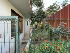 Участок земли площадью 3 сотки обустроен с любовью: здесь есть детская площадка, зона для барбекю и множество зелёных насаждений. Для вашего комфорта установлено видеонаблюдение, автономное газовое отопление, теплые полы. Также имеется крытая парковка для двух автомобилей.