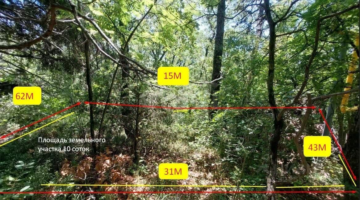 Два земельных участка площадью 10 соток расположен в поселке Мисхоре — одном из самых теплых мест Южного берега Крыма. До моря — 3 км. Участок разделен документально на две равные части по 5 соток, каждая с назначением ИЖС, что позволяет гибко использовать территорию. Окружение — смешанный лес с дубами, соснами и можжевельником, а также виноградники в шаговой доступности.