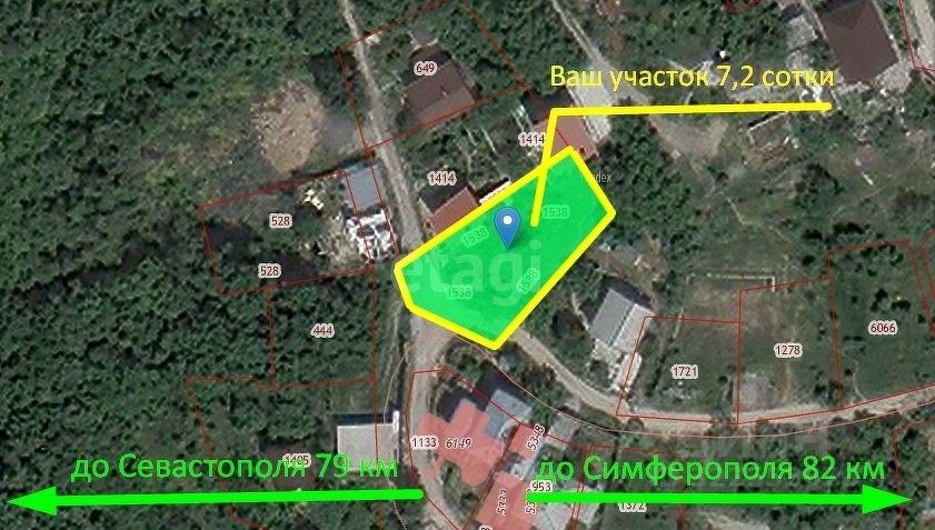 Продается участок общей площадью 7,2 сотки в пгт Васильевка. Участок имеет форму близкую к правильную с небольшим уклоном. С участка открывается живописный вид на море, город Ялту и горы. Коммуникации проходят по границе участка (свет, газ, вода). Участок подойдёт как под частный дом, так и под гостиницу.