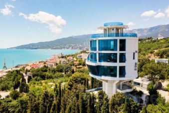 Предлагается к продаже уникальный дом в Ялте по эксклюзивному проекту. Здание представляет собой круглое строение на опоре высотой 28 метров от основания до верхней видовой площадки. Вокруг основной опоры по периметру бассейн.