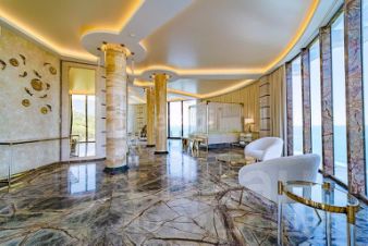 Общая площадь дома 610 кв.м. Пять этажей над землей с эксплуатируемой кровлей и террасой и 1 этаж технический, подземный. На любой этаж дома Вас поднимет скоростной лифт. Каждая деталь подтверждает его индивидуальность. Панорамные окна с видом в любою сторону, видовые комнаты общего пользования. Все шторы и окна на электроприводе с дистанционным управлением. Основным арт объектом внутренней части дома является стеклянная лестница с семи метровой люстрой. Спальня расположена на 4 этаже с видом 360 градусов.