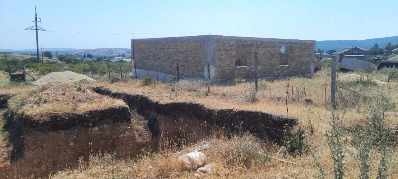 На участке недострой 11х13, фундамент и стены подняли до сейсмопояса, строили для себя.