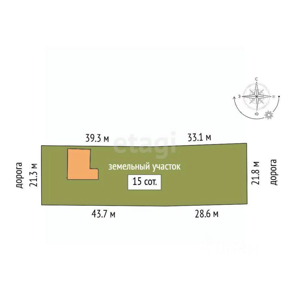 Площадь дома 72,5 кв. м, участка 15 соток.
