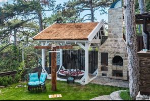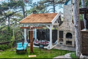 Двор с с беседкой,мангалом для барбекю и зоной отдыха.Так же бассейн с подогревом.