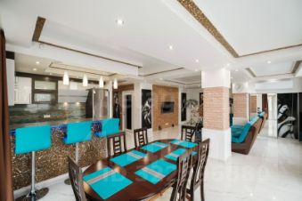 Вилла оборудована современной мебелью ,техникой,датчиками тепла(теплый пол) ,кондиционерами,тв,сигнализация.