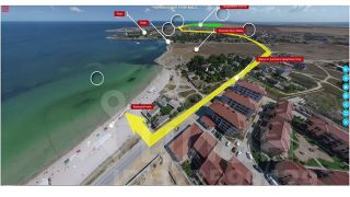 В общем проекте 36 гектаров реализуется 103 сотки. К земельному участку ведет дорога расположенная вдоль линии моря. Расстояние до бухты Ветреная 650 метров, расстояние до центрального пляжа 2500 метров.