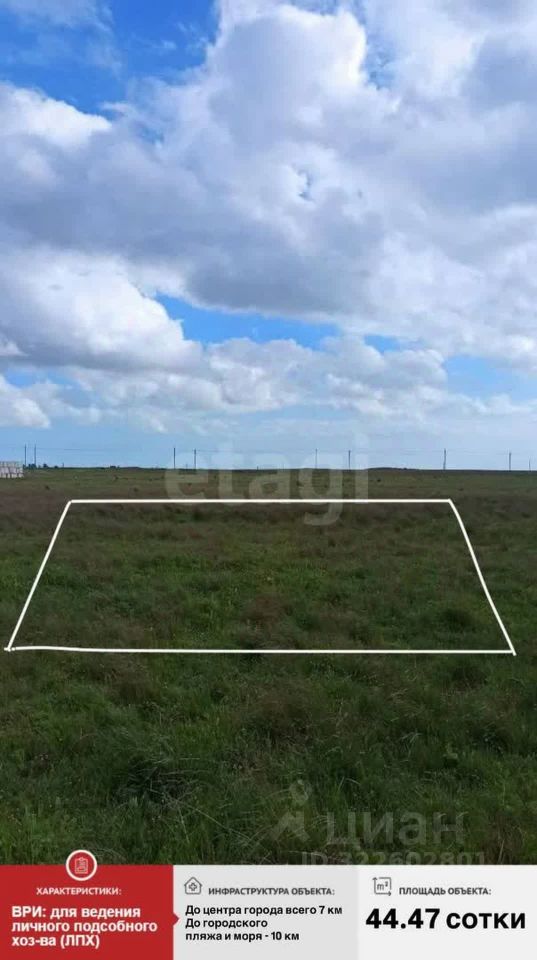 Продается земельный участок площадью 44.47 соток в селе Суворовское. Участок предназначен для личного подсобного хозяйства и находится в собственности.