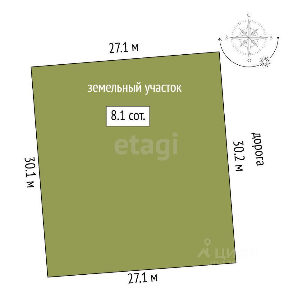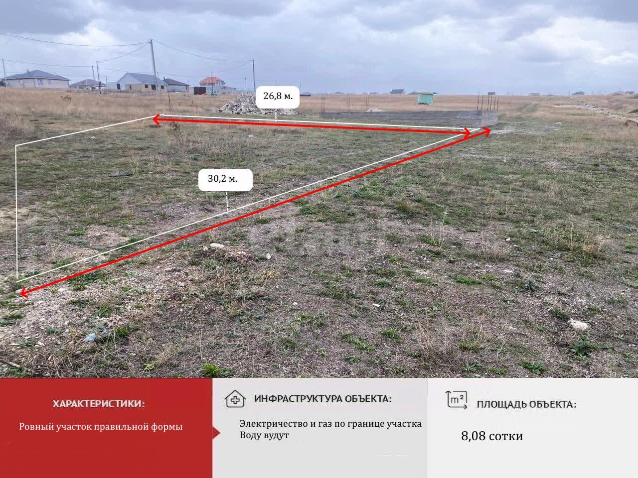 Площадь: 8,08 сотки (ровный, прямоугольной формы)