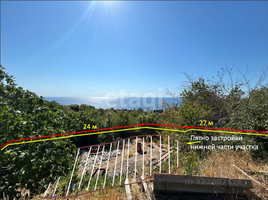 Продается террасированный участок 7 соток под ИЖС в курортном поселке Симеиз. Участок обладает исключительными видовыми характеристиками: с верхнего уровня открывается панорамный вид на Черное море и гору Ай-Петри, а с нижней уже сейчас просматривается морская гладь. Территория полностью подготовлена к строительству: получены технические условия, заведены электричество и вода, организован подъезд для легкового и грузового транспорта. Обустройство канализации возможно через септик, установлен уличный фонарь.