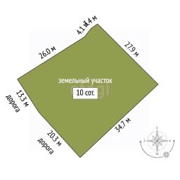 Территория идеально ровная, правильной формы, без перепадов высот, что упрощает планировку и застройку.