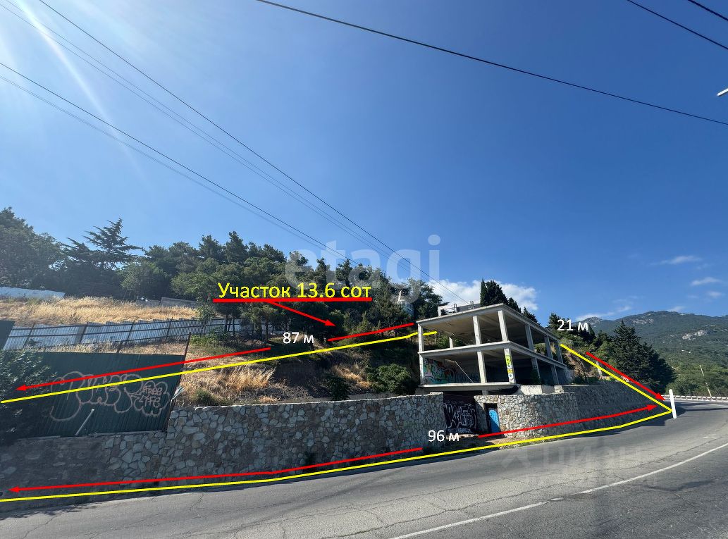 Продается земельный участок общей площадью 13,6 соток, расположенный в живописном курортном районе города Ялты, недалеко от отеля Ялта Интуриста. Участок располагает удобными подъездными путями с асфальтовым покрытием и центральными коммуникациями, что обеспечивает комфортное использование земли для различных целей.