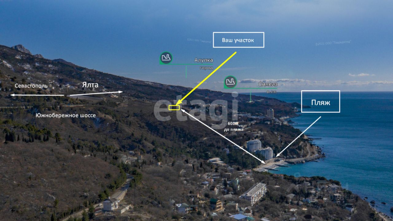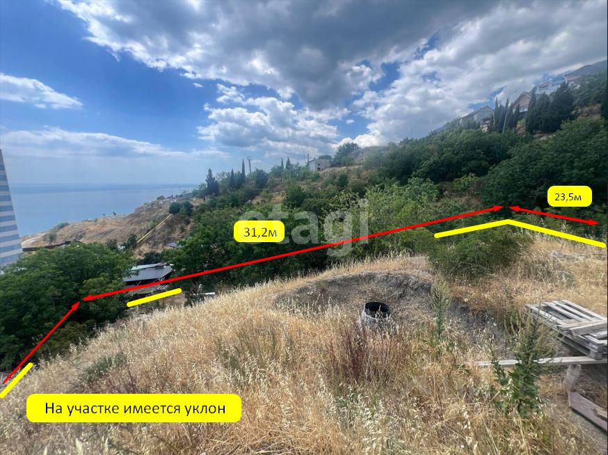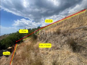 С участка открывается панорамный вид на море и горы. Есть уклон. Земля предназначена под ИЖС, что позволяет возвести частный дом для постоянного проживания или сезонного отдыха.